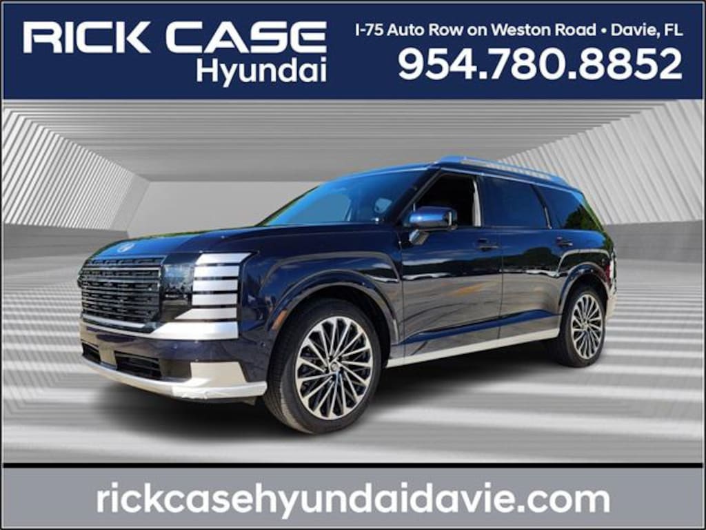 20 Year / 200,000 Mile Nationwide Warranty included! See dealer for details. Classy Blue Pearl 2026 Hyundai Palisade Calligraphy FWD 8-Speed Automatic V6 Price includes: $1250 - Hyundai HMF Dealer Choice : $1250 discount and 5.49% APR for 24 months. $44.09 per $1000 financed. Available to well qualified buyers who finance through Hyundai Motor Finance. H704. Exp. 12/01/2025