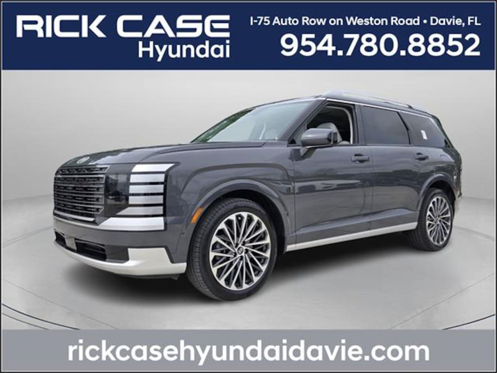 20 Year / 200,000 Mile Nationwide Warranty included! See dealer for details. Ecotronic Gray Pearl 2026 Hyundai Palisade Calligraphy FWD 8-Speed Automatic V6 Price includes: $750 - Hyundai HMF Dealer Choice : $750 discount and 5.39% APR for 24 months. $44.05 per $1000 financed. Available to well qualified buyers who finance through Hyundai Motor Finance. H704. Exp. 02/02/2026